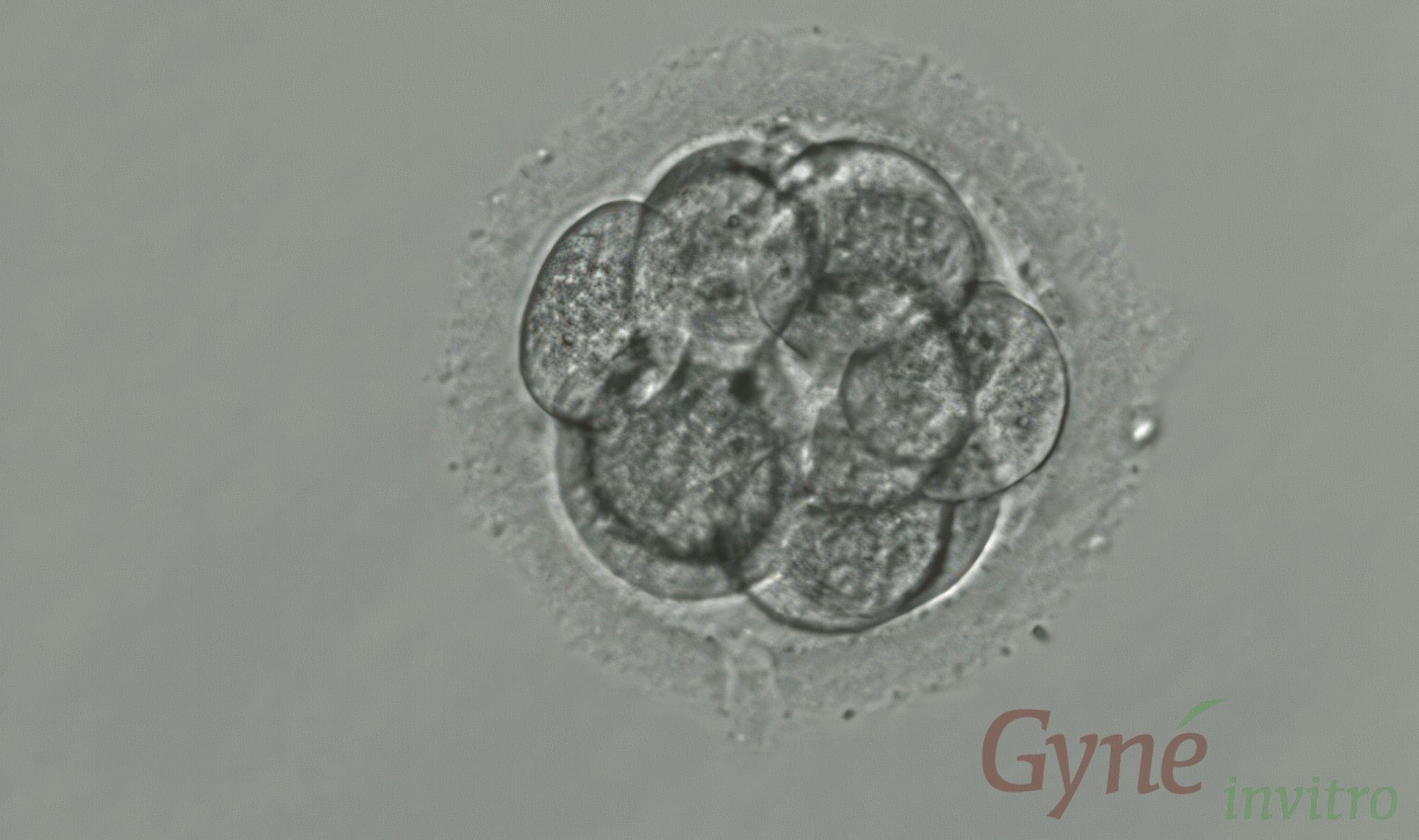 Am zweiten und dritten Tag finden die ersten Zellteilungen statt: oben ein erfolgversprechender Embryo im Stadium von 10-11 Zellen am dritten Tag. Ab diesem Zeitpunkt müssen die Chromosomen im Embryo anfangen, Eiweisse zu bilden, damit das nächste Stadium erreicht wird; bei ausgeprägten Verteilungsstörungen der Chromosomen findet der nächste Schritt gar nicht statt.